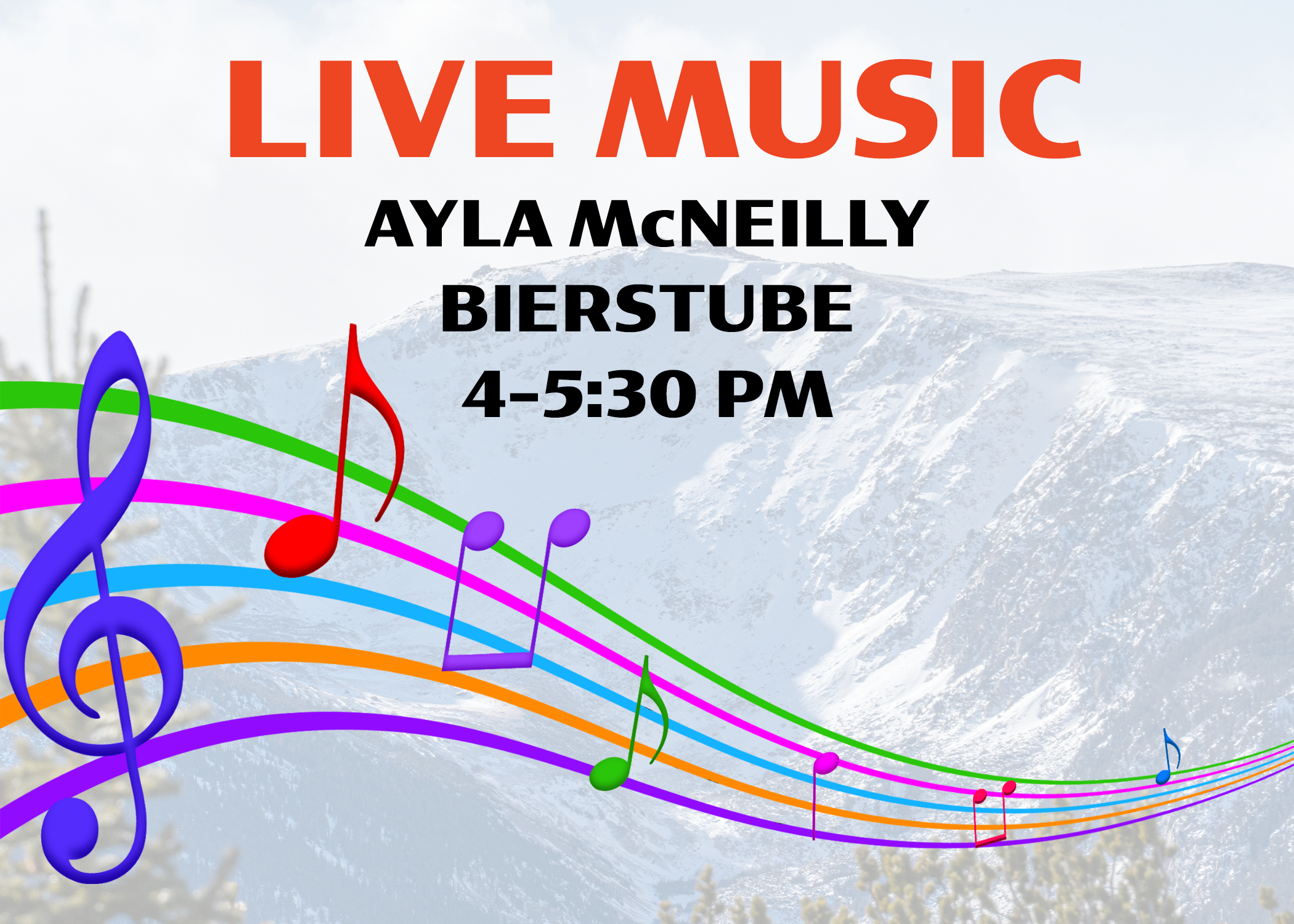 Kick off the new year with some live tunes from RLM Ski Patroller Ayla McNeilly from 4:00PM-5:30PM!
